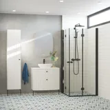Dansani Match classic corner shower with two shower doors that open either outwards or inwards when not in use. Perfect for freeing up valuable space in small rooms.