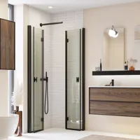 Both shower doors can be folded inwards when they are not in use, which is ideal for a small bathroom. The clever bifold shower door also solves the problem with water dripping onto the floor when the door is opened. The shower doors fold into the wet area thereby keeping the water inside.