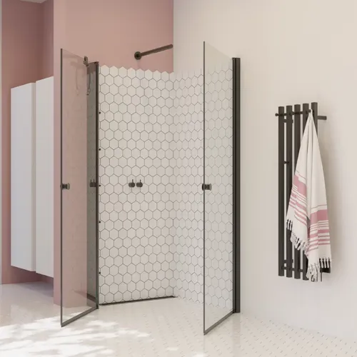 Together, two quadrant shower doors from the Dansani Match range can form a corner shower. The doors open both in and out freeing up valuable space when not in use.