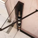 The glass panel can be adjusted by 20mm at the wall profile, and is fixed in place with PVC profiles inside the aluminium profile. The floor profile can be adjusted up to 6mm horizontally and using the spacers provided to suit, 12mm vertically. Alternatively, a 12mm adjustable floor bracket can be used for wet room solutions where no seals are required.