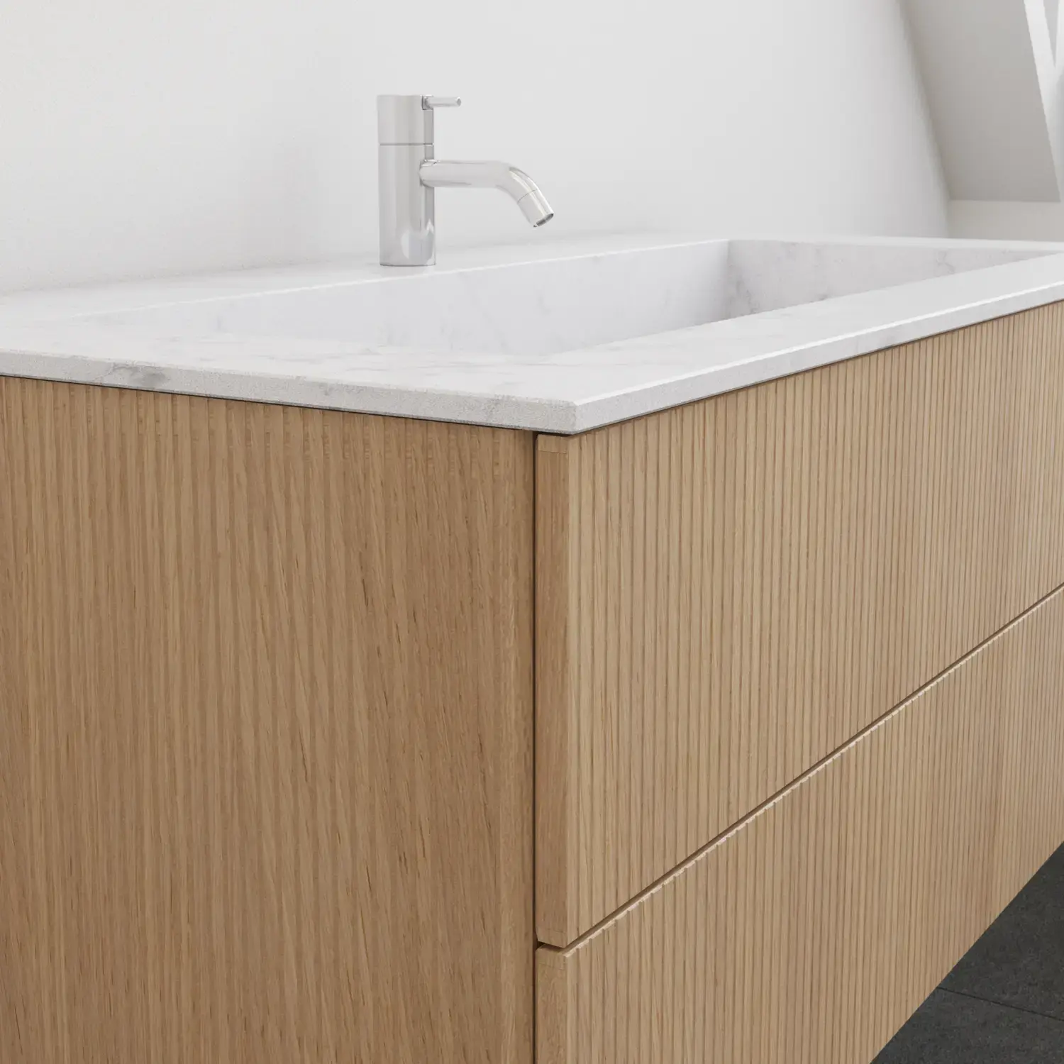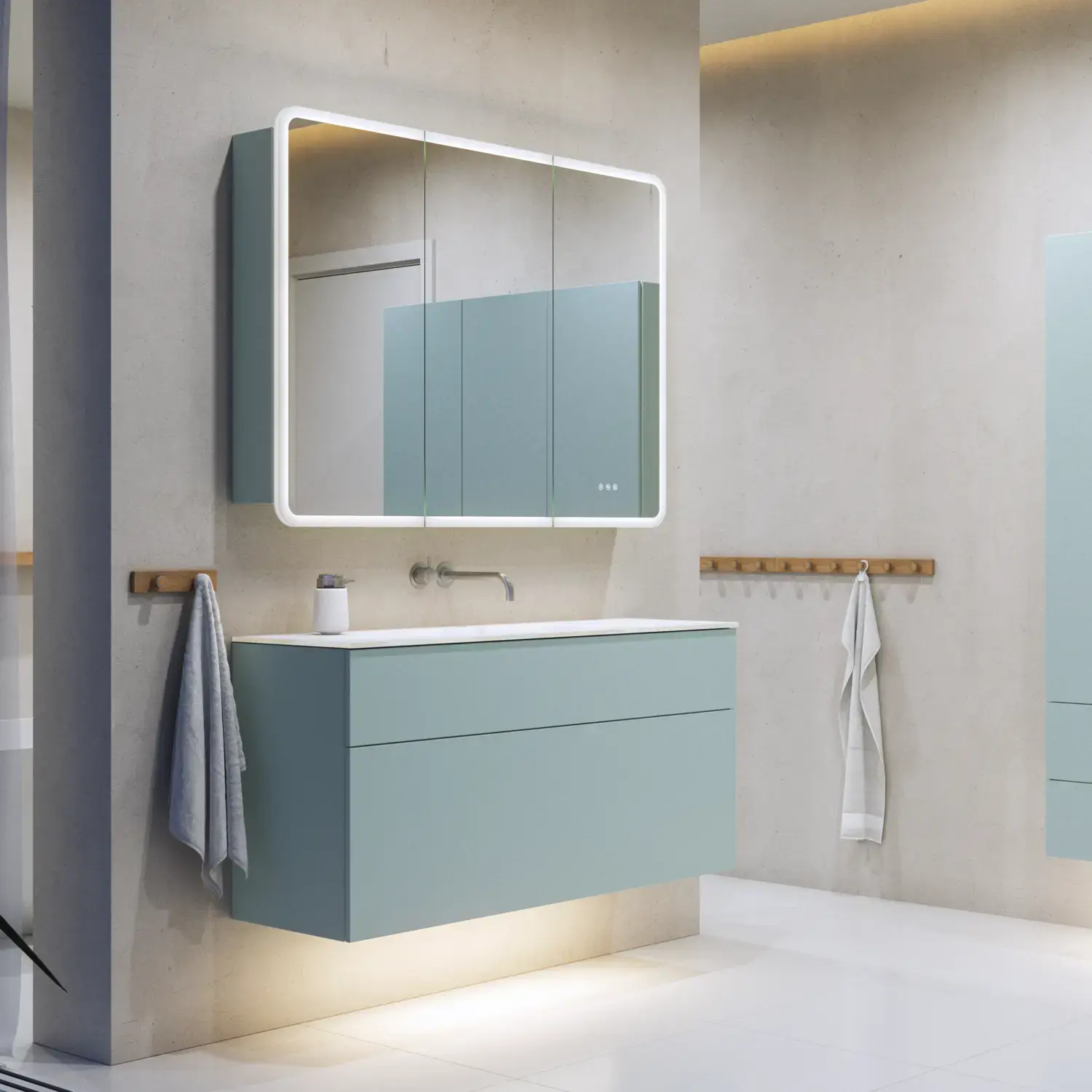 For Calidris, vanity units, cabinets, open shelving units, tall cabinets and wall cabinets are available in a wide range of depths, widths and heights. Get the complete overview in the catalogue.