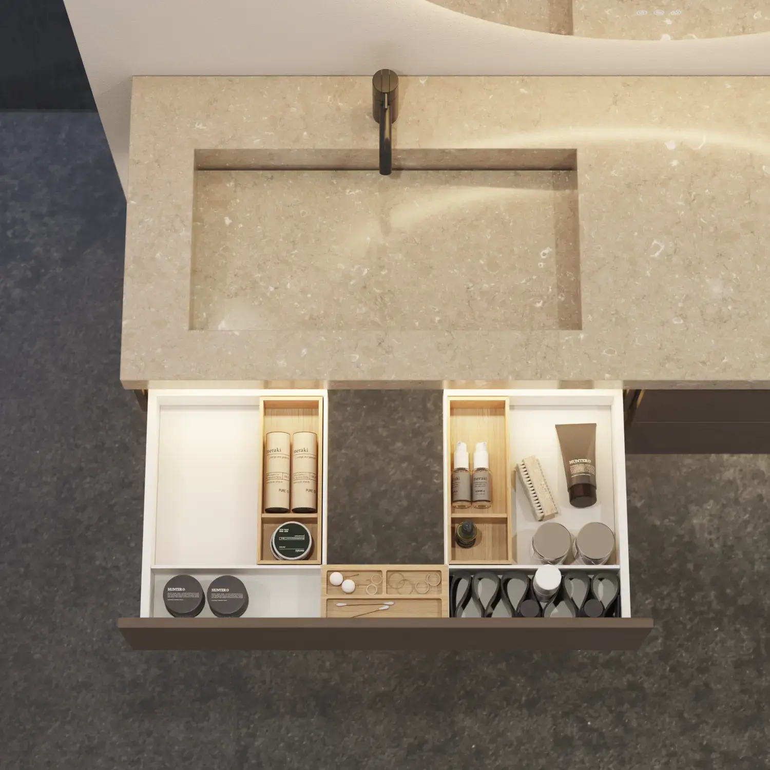 A beautiful basin calls for an equally beautiful worktop.
