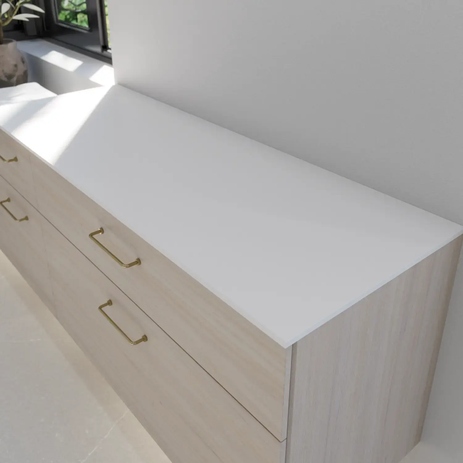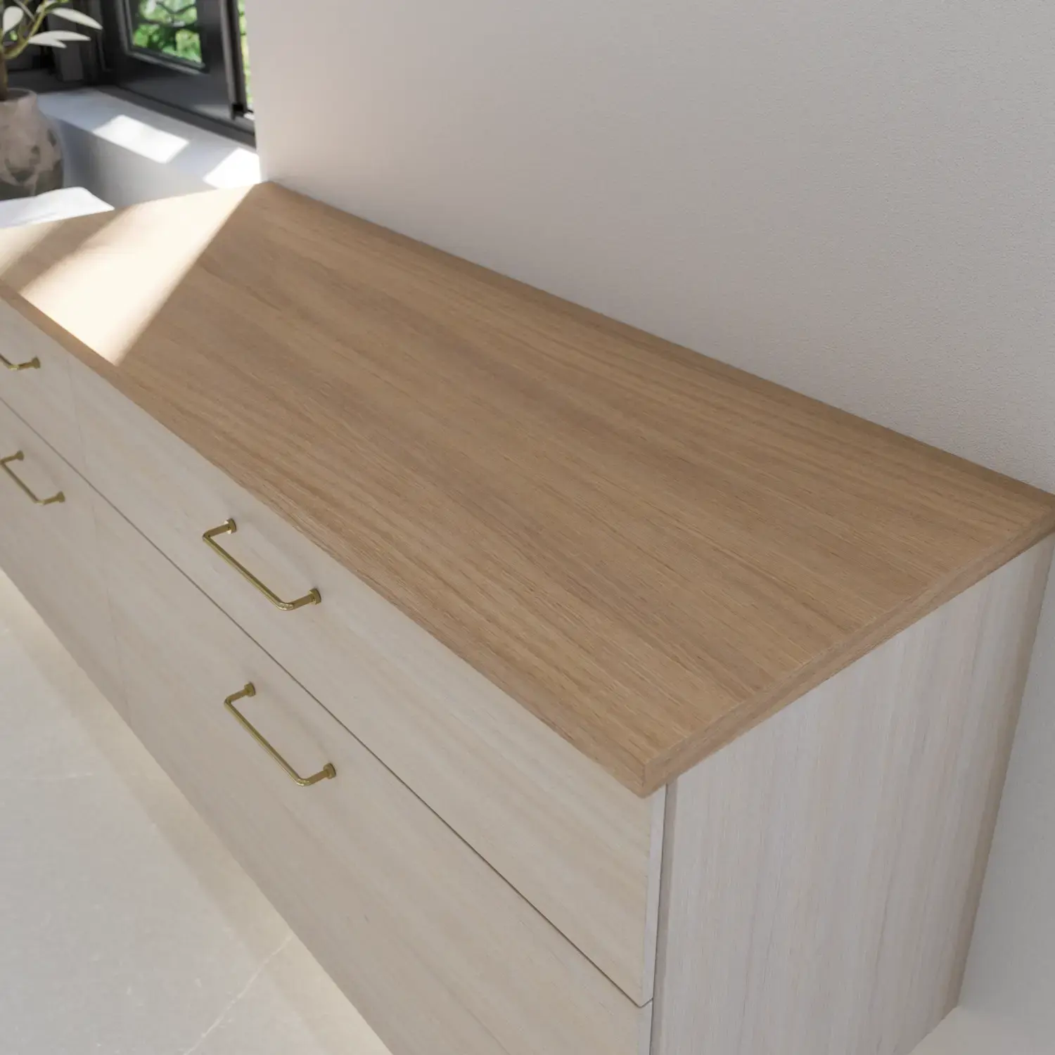 For a harmonious, cohesive look select a wooden worktop that matches your furniture. Choose from seven veneered decors to create a warm, coordinated look.