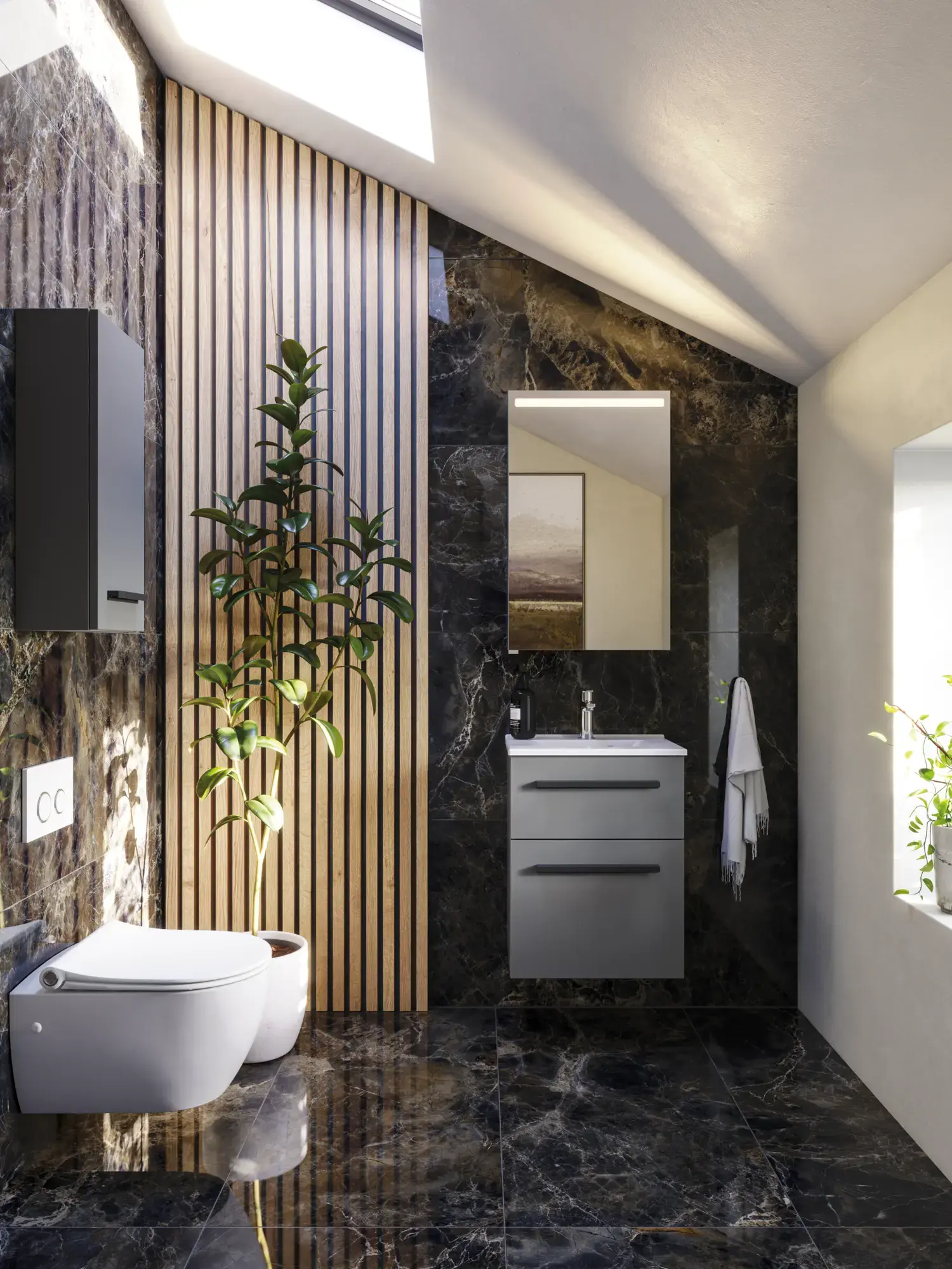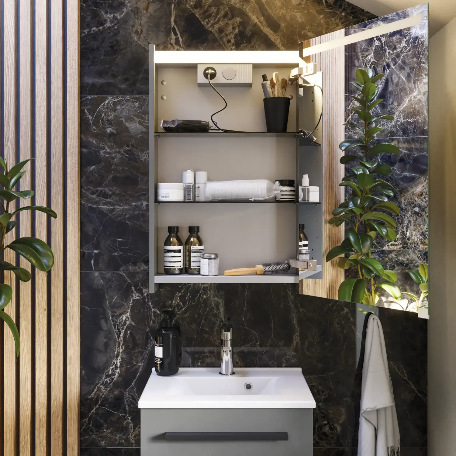 The mirrors and mirror cabinets feature sleek, modern LED lighting, while the double-sided mirror doors offer a flawless view from every angle. Mido Urban combines timeless design with practical details - the perfect choice for the modern home.